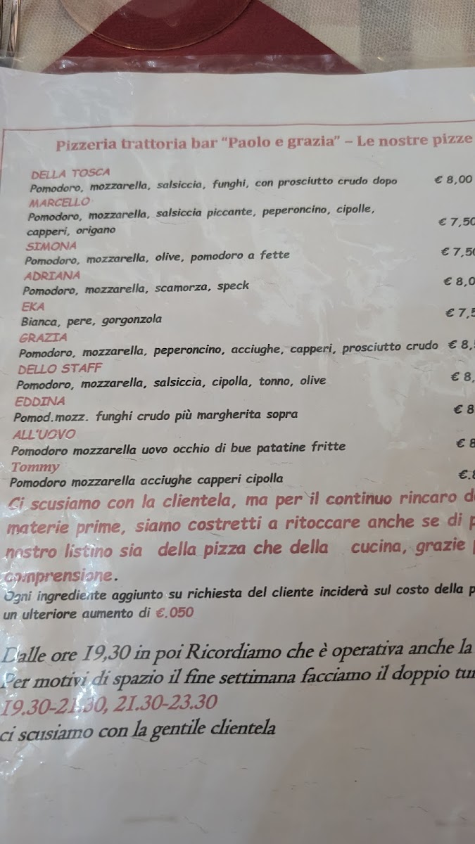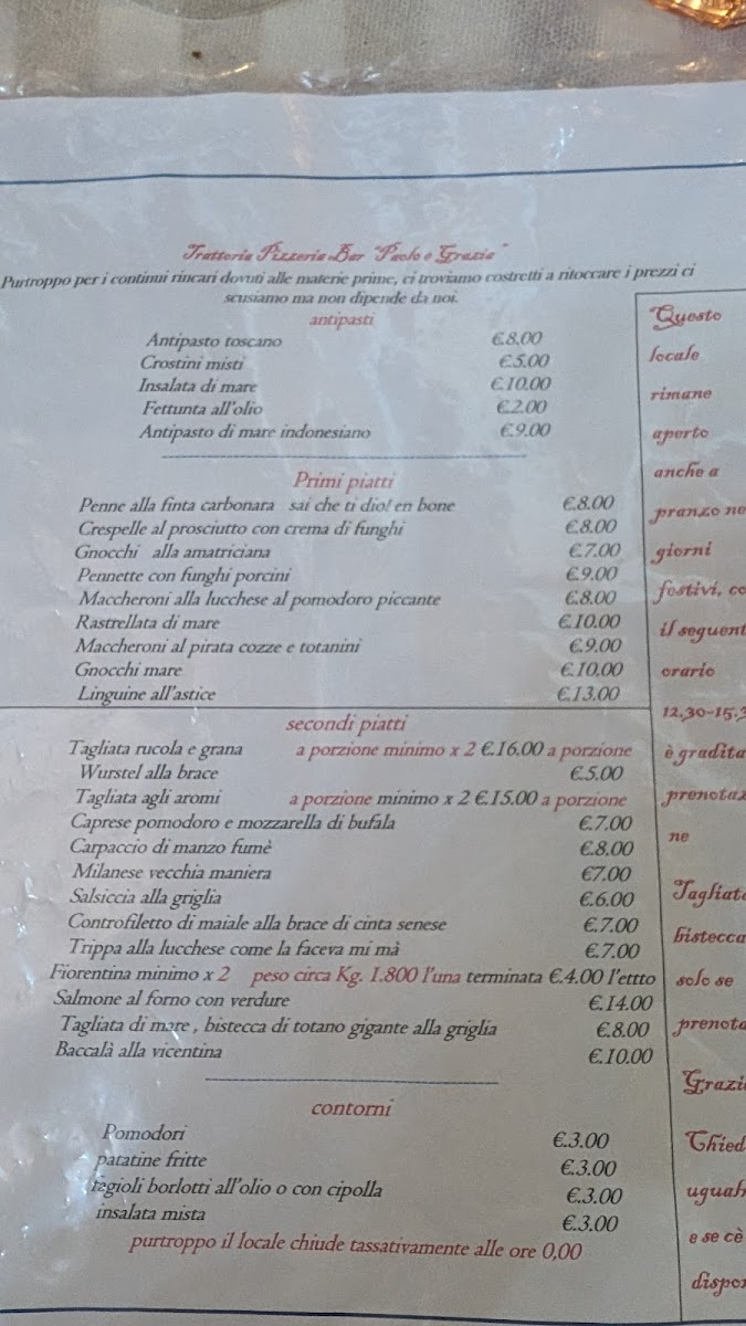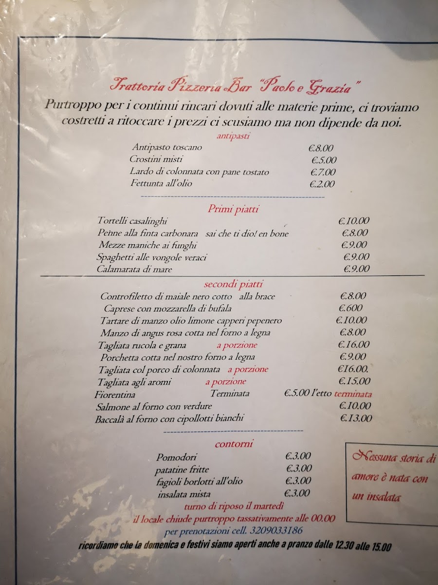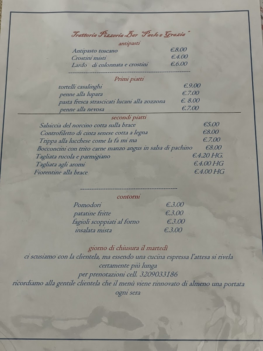 The menu at Trattoria Pizzeria Paolo E Grazia reflects a clear respect for Italian tradition, balancing rustic comfort food with well-executed classics. Starters such as Antipasti, Affettato Di Salame, Crostini Misti, and Antipasto Salumi E Pasta Fritta set the tone with generous portions and authentic flavors, offering a satisfying introduction built around cured meats, fried dough, and toasted bread. Pasta dishes are a strong point, with handmade options like Tortelli Casalinghi standing out for their homestyle preparation, while Caserecci Ai Funghi Porcini delivers earthy depth through the use of porcini mushrooms. For those seeking indulgence, Gnocchi Al Tartufo offers a rich, aromatic experience that highlights truffle without overwhelming the palate.